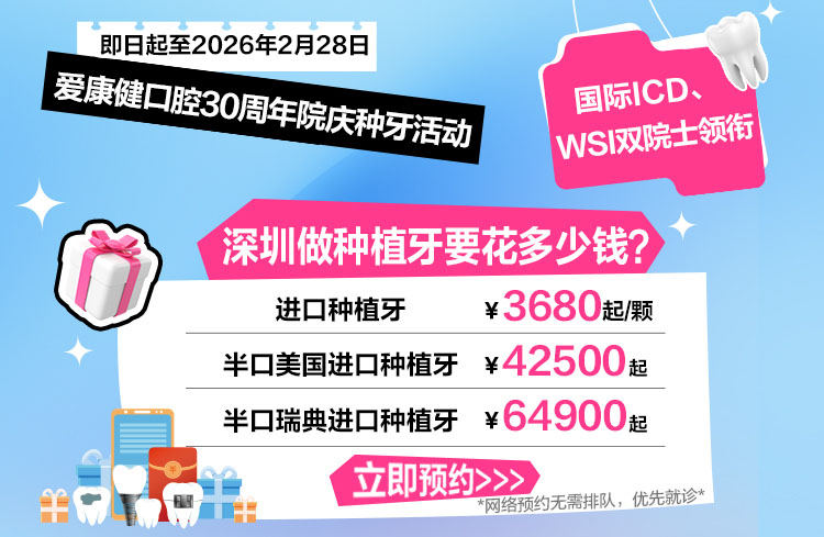 深圳种植牙哪家医院好?深圳爱康健齿科始于1995年,28年老字号牙科医院,深圳全城连锁13家院如您想了解即刻种植牙及费用相关问题,拨打爱康健口腔咨询热线:0755-61302632 进行咨询!